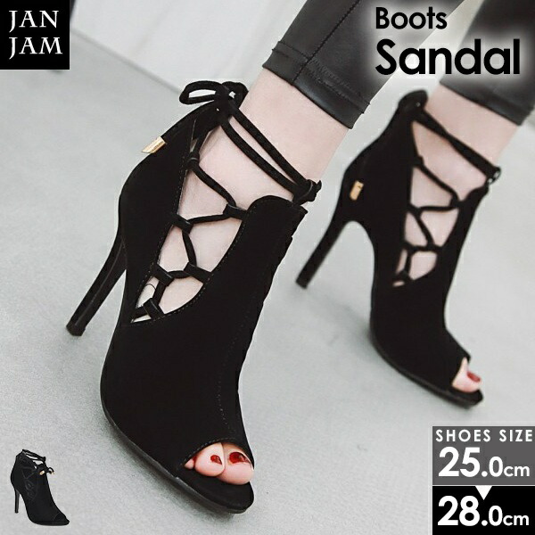 大きいサイズ レディース ブーツサンダル 25 28cm サイドレースアップ オープントゥ ピンヒール ハイヒール 靴 ブーサンの通販はau Pay マーケット Janjamcollection
